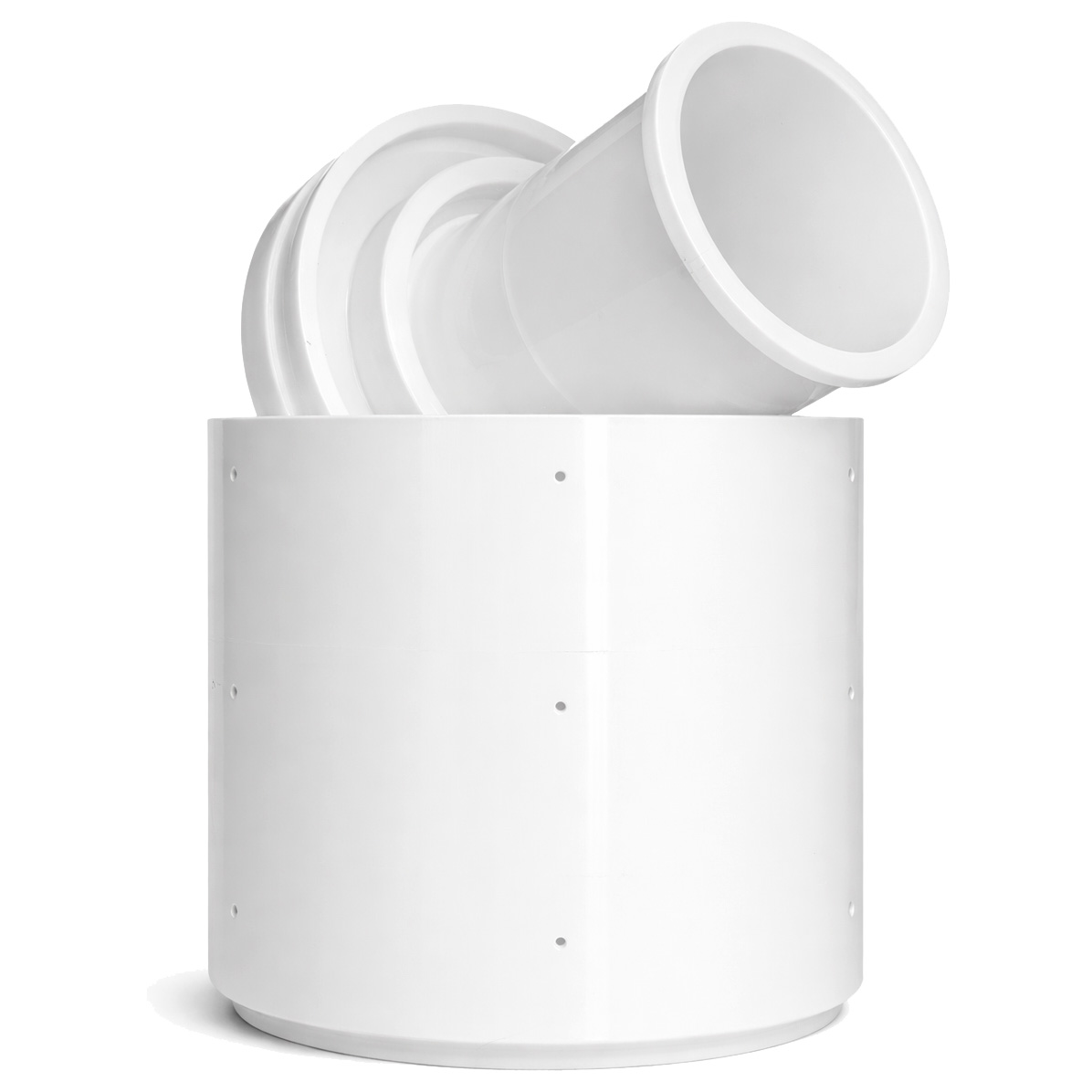 Прочная универсальная форма с крышкой-поршнем. На сырные головки до 1,5 кг. 50 отверстий.